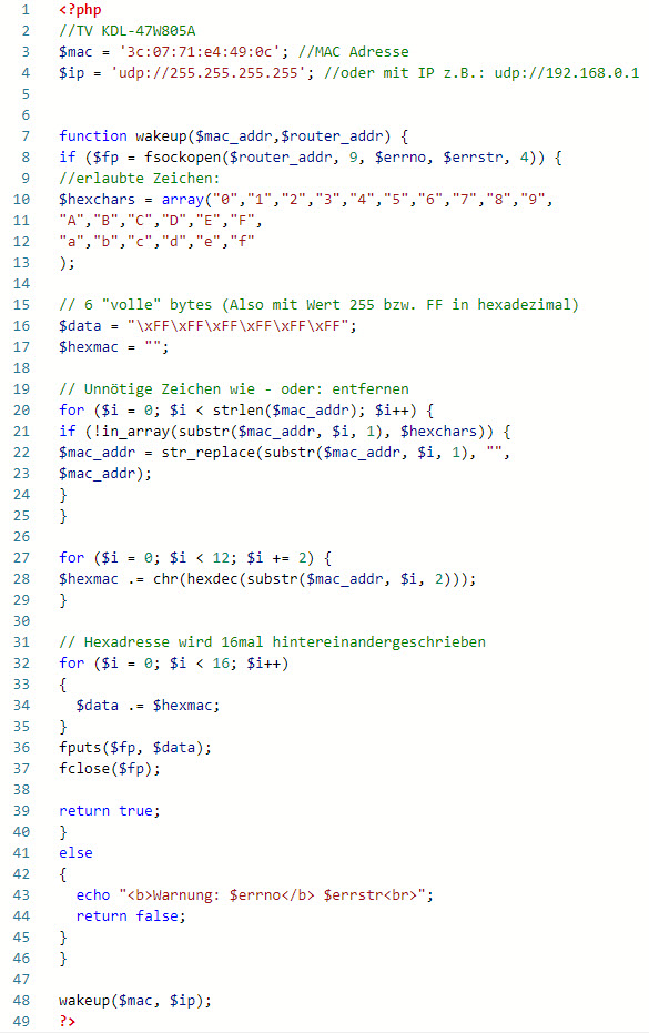 Das Zusammenstellen eines solchen Magic-Paket's via PHP-Script ist wahrlich keine Meisterleistung und voila... ich kann den Sony-TV nun auf Knopfdruck einschalten. Somit funktioniert auch das eingangs beschriebene Szenario und ich habe eine dedizierte Taste "TV schauen" im Wohnzimmer...