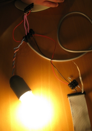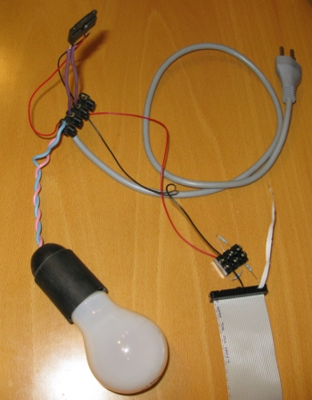 Ich weise ausdrücklich darauf hin, dass der Testaufbau GEFÄHRLICH ist und nur nachgemacht werden sollte, wenn die einschlägigen Sicherheitsvorschriften bekannt sind und wem der Umgang mit Netzspannung vertraut ist. Da ich ursprünglich Elektromonteur gelernt habe, bin ich mir daurchaus bewusst, was ich da mache.