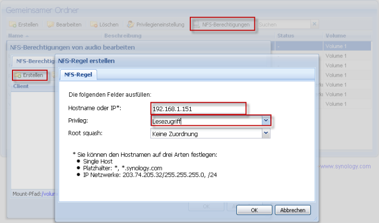 Audio-Streamingserver Video-Streamingserver NFS auf Synology einrichten