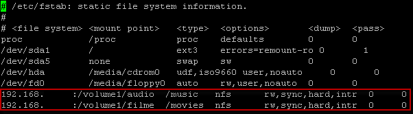 Zu meinem Erstaunen ist NFS relativ schnell eingerichtet, weil alle notwendigen Programme mit der Standardinstallation von Debian 5.0 (Lenny) offenbar bereits installiert wurden. Es mussten lediglich die NFS-Berechtigungen auf der Synology eingerichtet sowie die Mounts bei Linux eingetragen werden. Fertig war es :-)