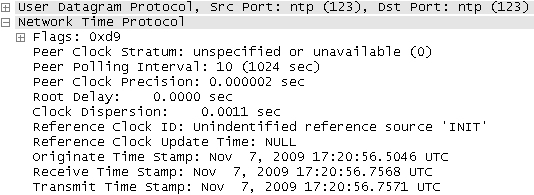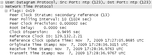 Wichtig ist hier nun, dass ein Eintrag (möglichst nicht bei "LOCAL") ein Sternchen (*) hat. Dies bedeutet, dass der Zeitserver mit diesem Server synchronisert ist. Klingt banal ist aber W-I-C-H-T-I-G und ist Voraussetzung für eine korrekte Funktion. Bei mir half die Anweisung fudge in der Konfiguration um einen "besseren" Stratum vorzutäuschen. Das Problem liegt bei Windows. Ein Windowsrechner kann sich angeblich NUR mit einem Stratum 2 oder tiefer (besser) synchronisieren. Ohne die fudge - Anweisung synchronisierte mir kein Windows-Rechner mit meinem Zeitserver. Dieses Problem benötigte auch entsprechend Zeit um es zu lösen. Wie immer bei Netzwerkproblemen verwende ich den Sniffer Etherreal/Wireshark um mir die Kommunikation genauer anzuschauen. Folgendes konnte ich erkennen (oben ohne und unten mit der fudge - Anweisung.