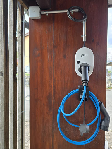 | Fertig installiert und auf das Laden des Autos wartend sieht die Ladestation dann so aus. |