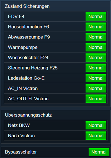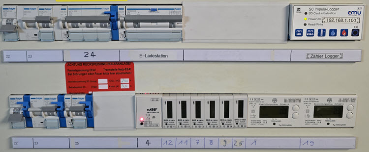 Selbstverständlich hat auch die relevante Sicherung "E-Ladestation" einen Signalkontakt erhalten (links neben der Sicherung), damit ein allfälliges Ansprechen des Leitungs- und Fehlerstromschutzschalters (im Fachjargon FI-LS genannt) sofort via Hausautomation gemeldet und visualisiert werden kann :-)