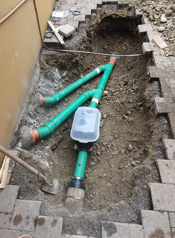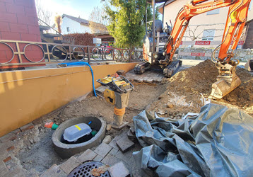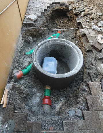 | Der Rückstauautomat muss natürlich auch erreichbar sein, daher wird ein neuer Schacht gesetzt. |